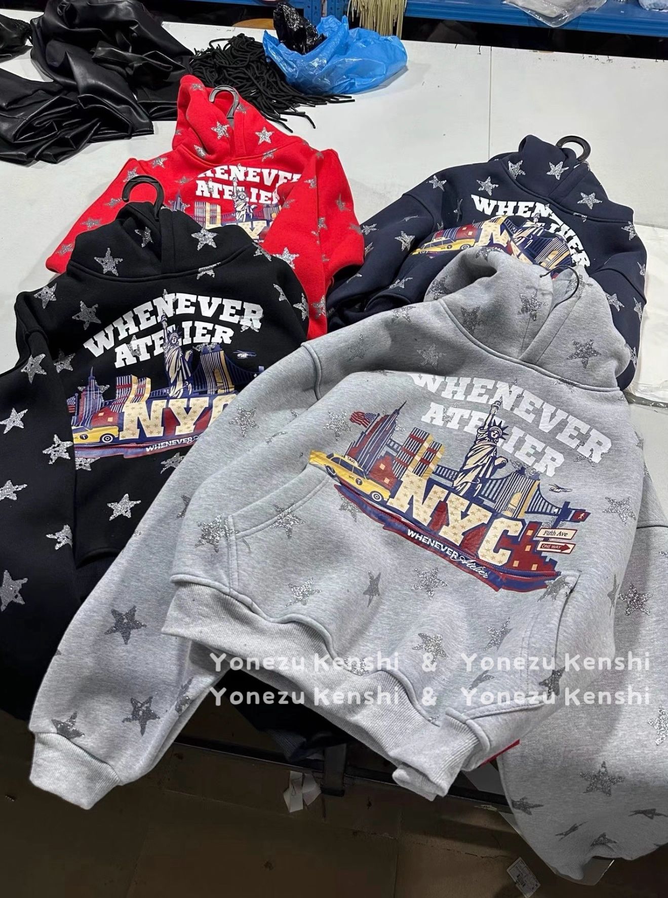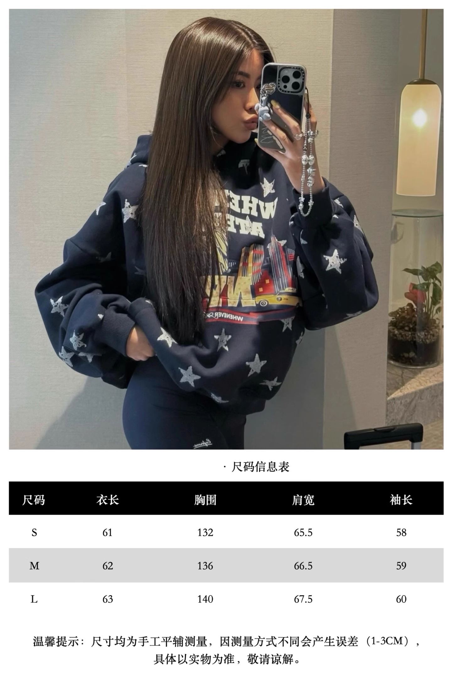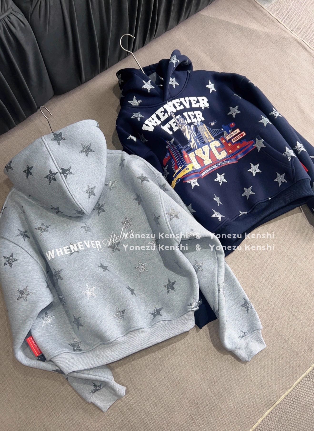 25fw ins爆火whenever越南闪粉星星秋冬加绒厚款套头连帽卫衣帽衫