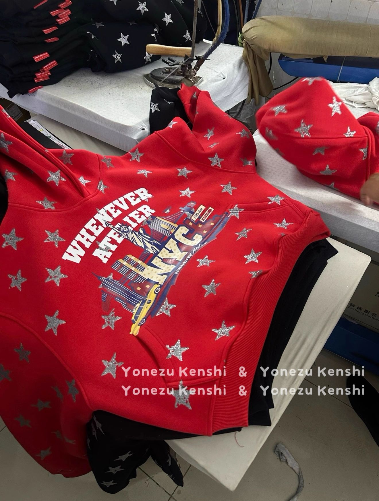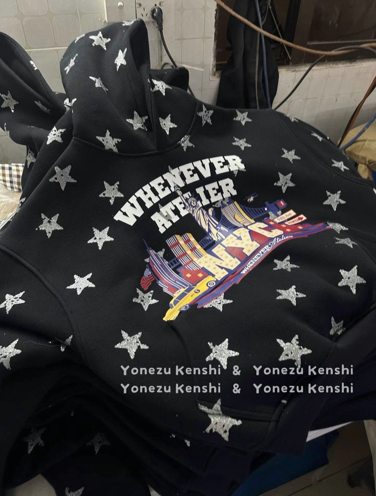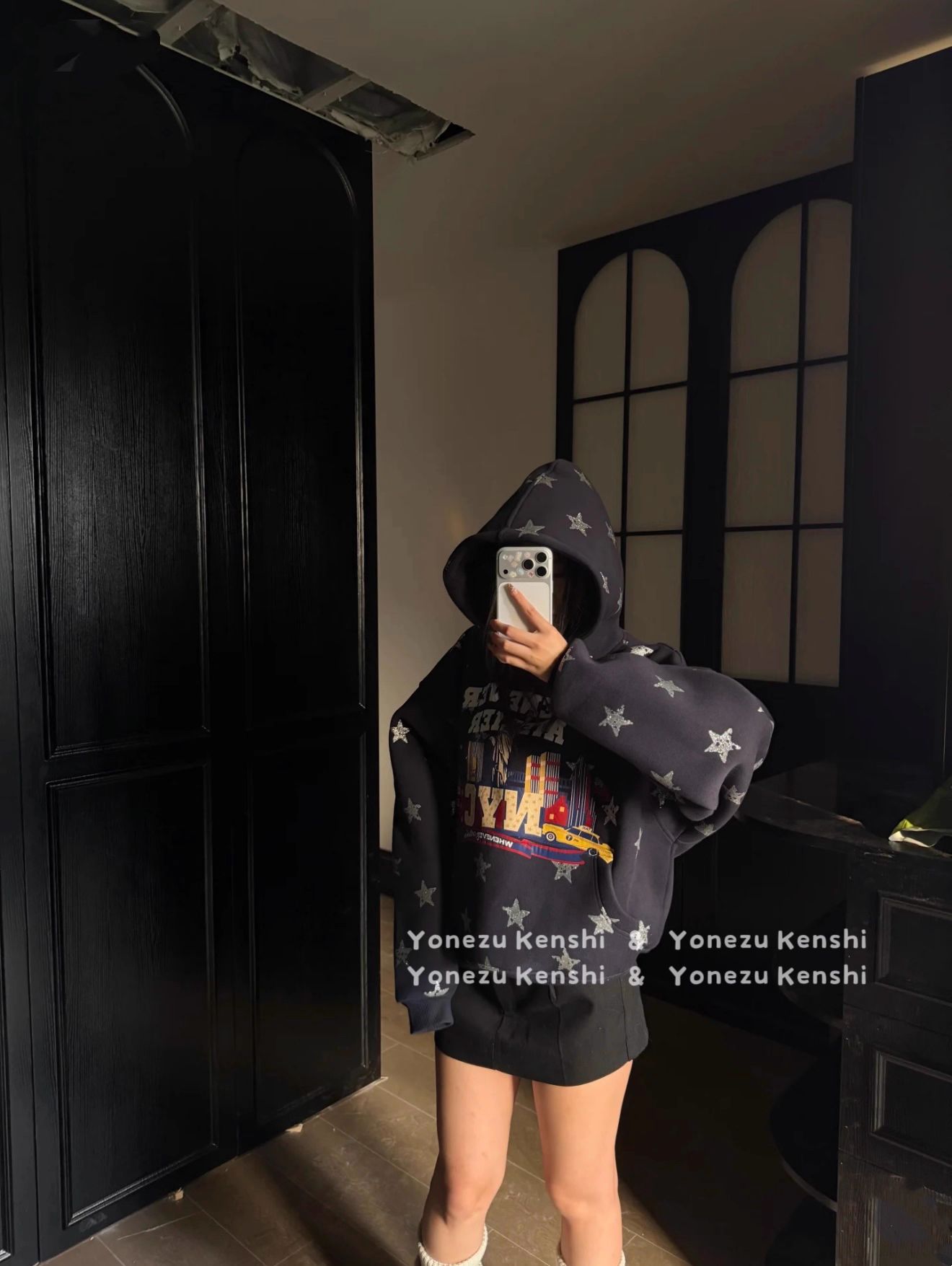 25fw ins爆火whenever越南闪粉星星秋冬加绒厚款套头连帽卫衣帽衫