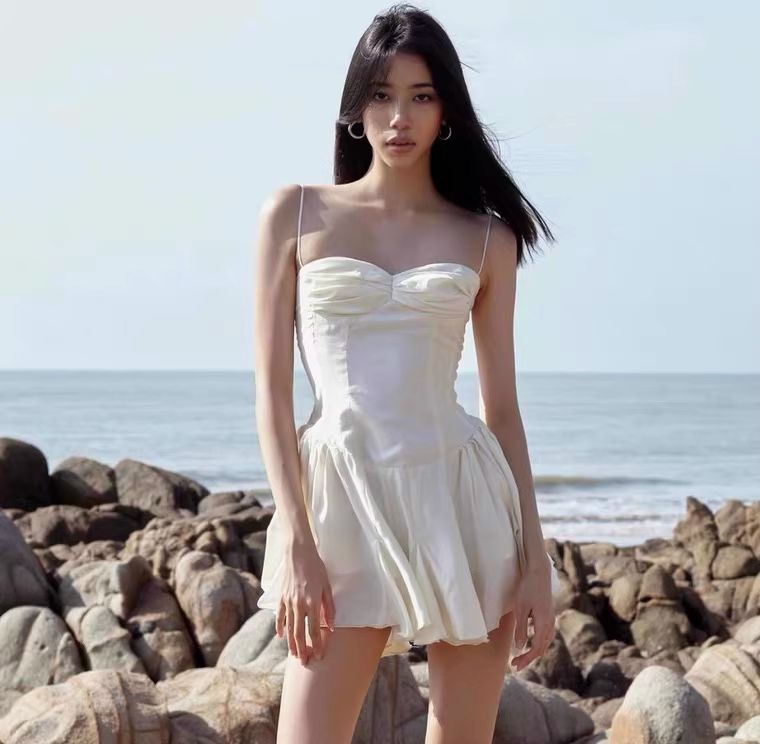 越南小众白色显瘦抹胸裙海边纯欲温柔风吊带连衣裙海南度假沙滩裙