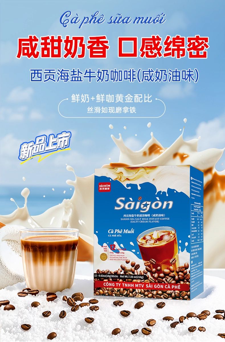 越南西贡海盐牛奶咖啡咸奶油味精品盒装特产送礼防困速溶咖啡饮品216g/包
