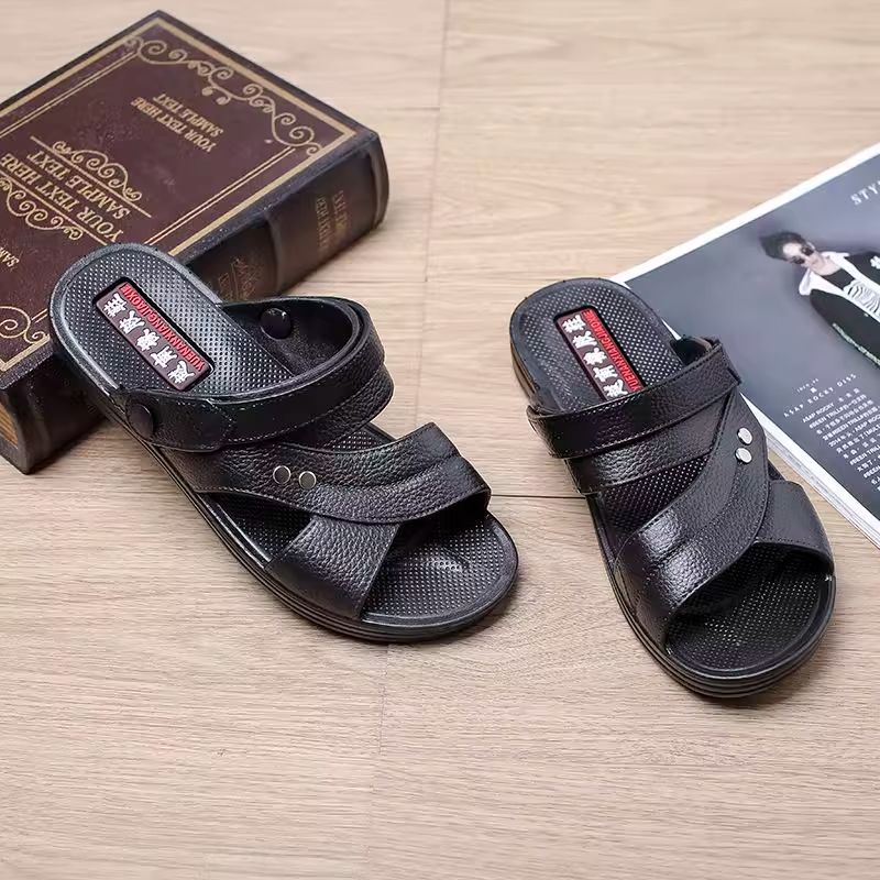 越南天然橡胶凉鞋[穿坏包赔]凉鞋男款厚底耐磨防水防滑男士凉拖