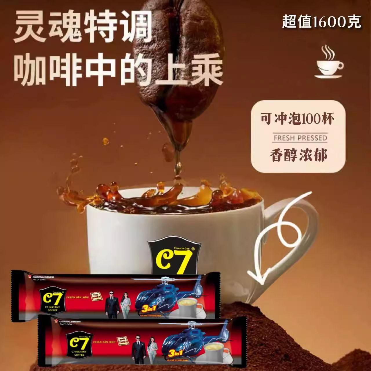 源自越南正品C7咖啡三合一速溶咖啡粉特浓炭烧味咖啡粉1600g/袋