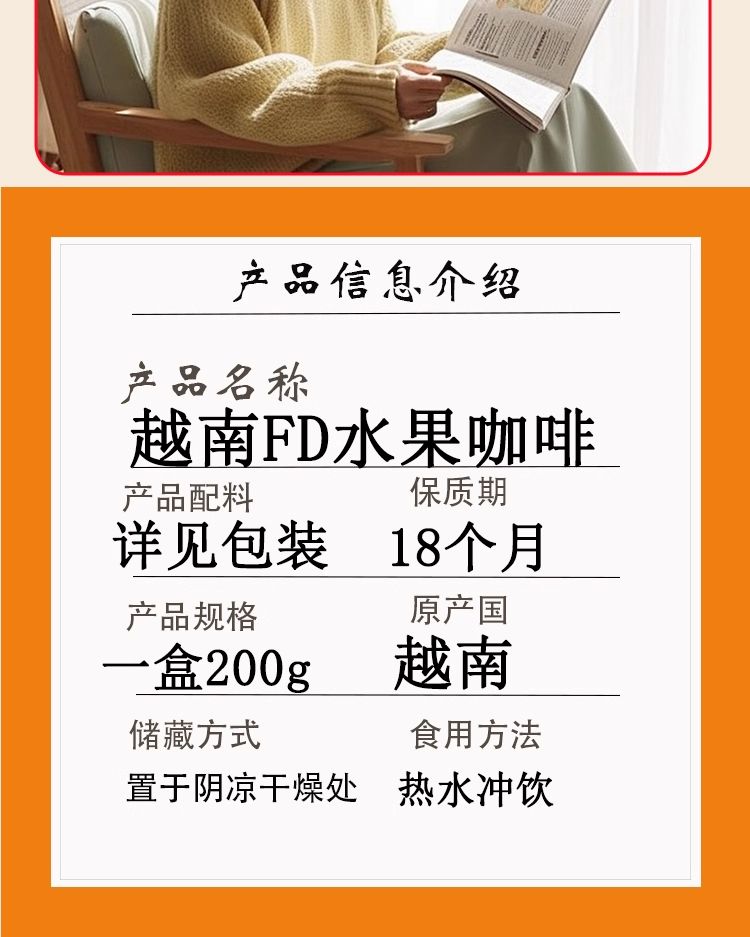 越南特产原装代购FD速溶咸咖啡水果味四合一咖啡办公室采购饮品200/盒